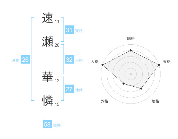 速瀬 華憐さんの天格は31画の5点!