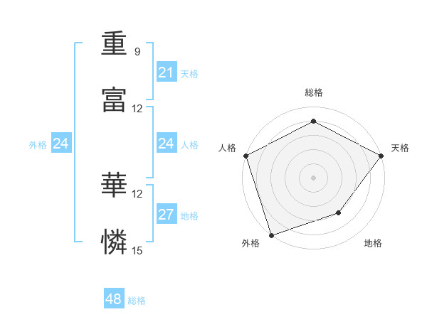 重富 華憐さんの総格は48画の4点!