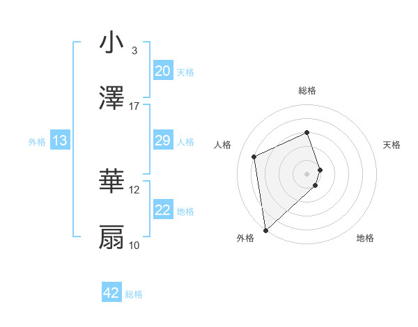 小澤 華扇さんの外格は13画の5点!