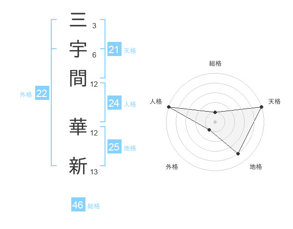 三宇間 華新さんを姓名の画数から五運を鑑定
