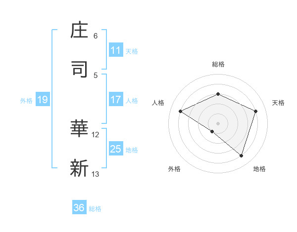 庄司 華新さんの天格は11画の4点!