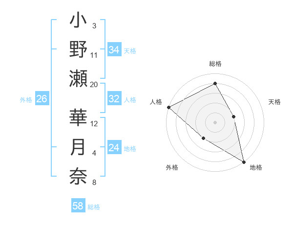 小野瀬 華月奈さんを姓名の画数から五運を鑑定