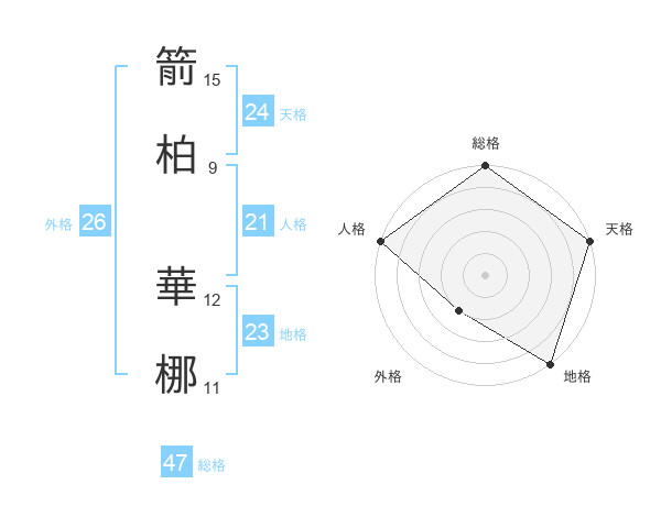 箭柏 華梛さんの総格は47画の5点!