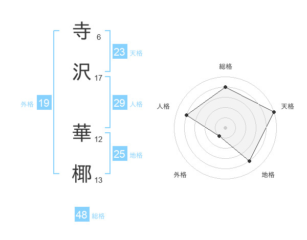 寺沢 華椰さんの総格は48画の4点