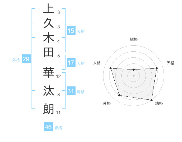 上久木田 華汰朗さんを姓名の画数から五運を鑑定
