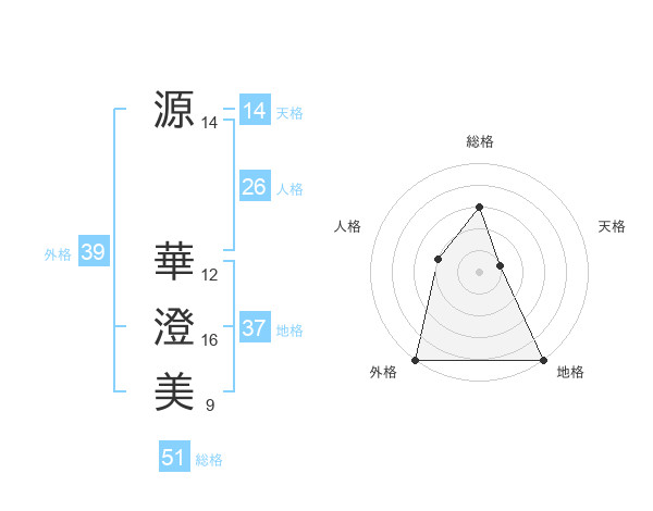 源 華澄美さんの総格は51画の3点!