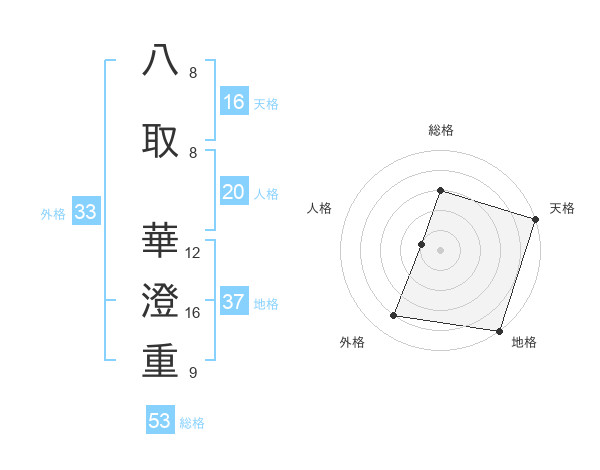 八取 華澄重さんの天格は16画の5点!