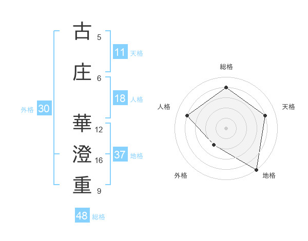 古庄 華澄重さんを姓名の画数から五運を鑑定