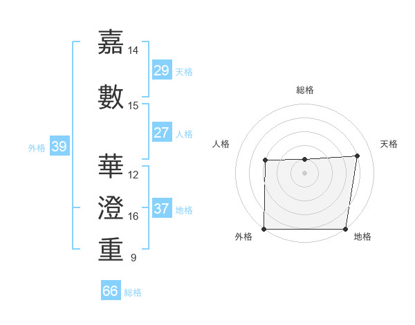 嘉數 華澄重さんの天格は29画の4点!