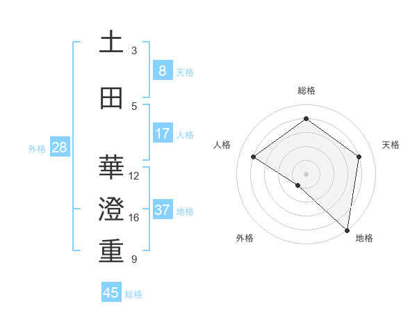 土田 華澄重さんの総格は45画の4点