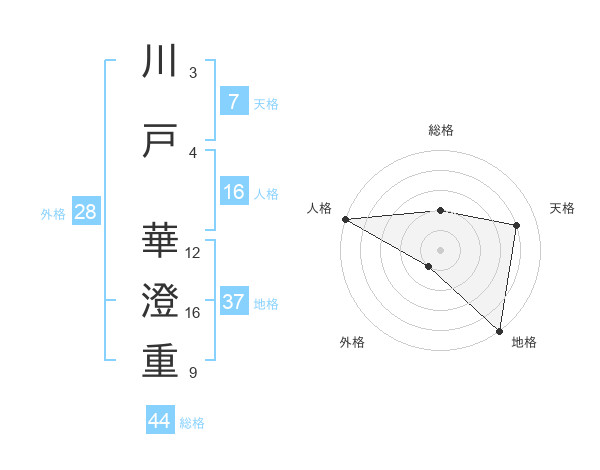 川戸 華澄重さんを姓名の画数から五運を鑑定
