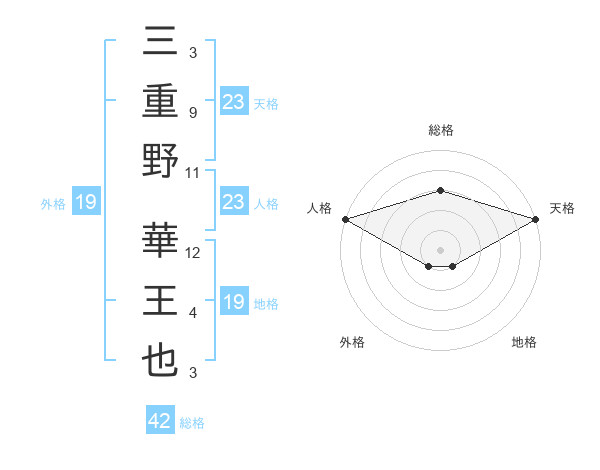 三重野 華王也さんを姓名の画数から五運を鑑定