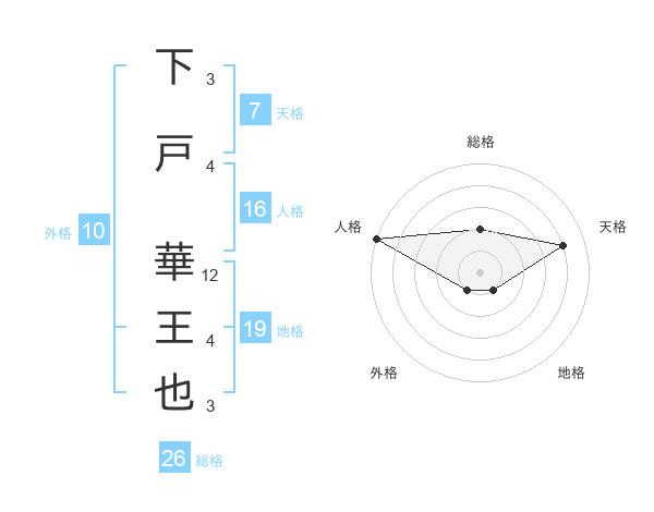 下戸 華王也さんの天格は7画の4点!
