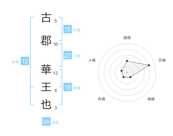 古郡 華王也さんを姓名の画数から五運を鑑定