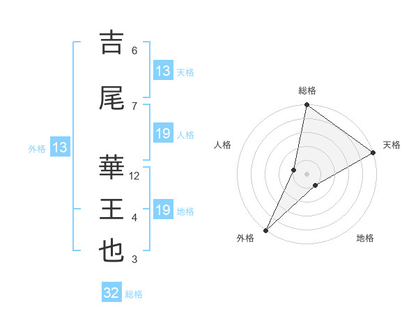 吉尾 華王也さんの総格は32画の5点!