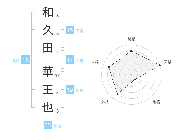和久田 華王也さんを姓名の画数から五運を鑑定