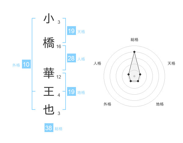 小橋 華王也さんを姓名の画数から五運を鑑定