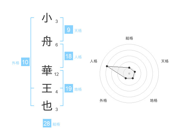 小舟 華王也さんを姓名の画数から五運を鑑定