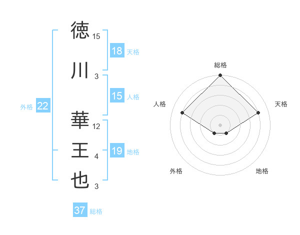 徳川 華王也さんを姓名の画数から五運を鑑定