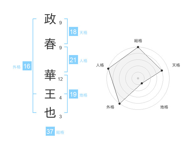 政春 華王也さんの総格は37画の5点!