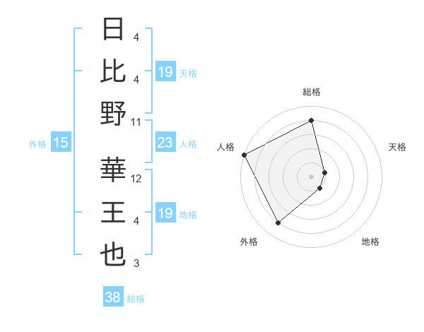 日比野 華王也さんを姓名の画数から五運を鑑定
