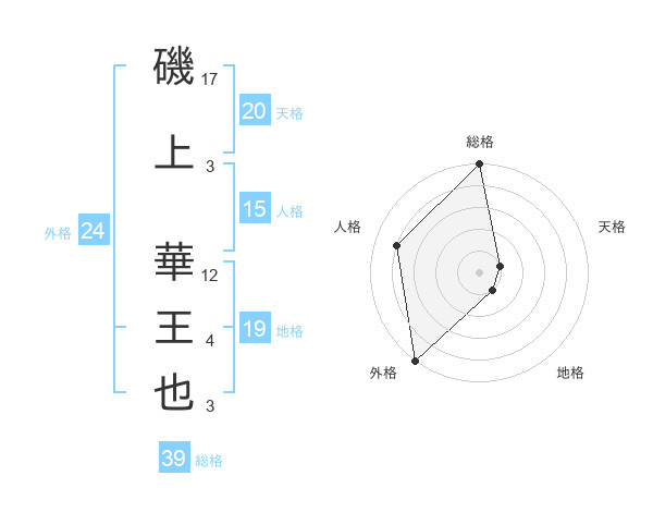 磯上 華王也さんを姓名の画数から五運を鑑定