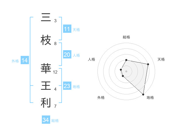 三枝 華王利さんを姓名の画数から五運を鑑定