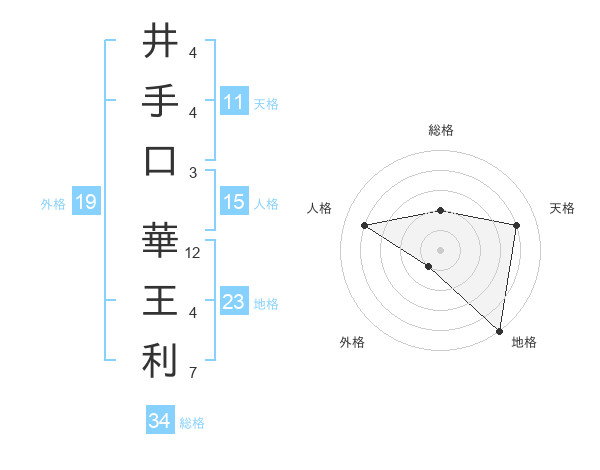 井手口 華王利さんの地格は23画の5点!