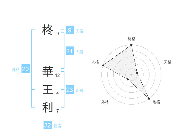 柊 華王利さんの地格は23画の5点!