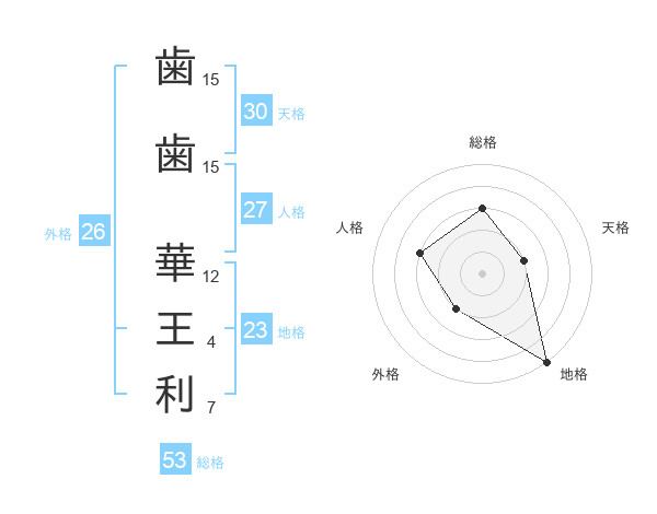 歯歯 華王利さんの総格は53画の3点!