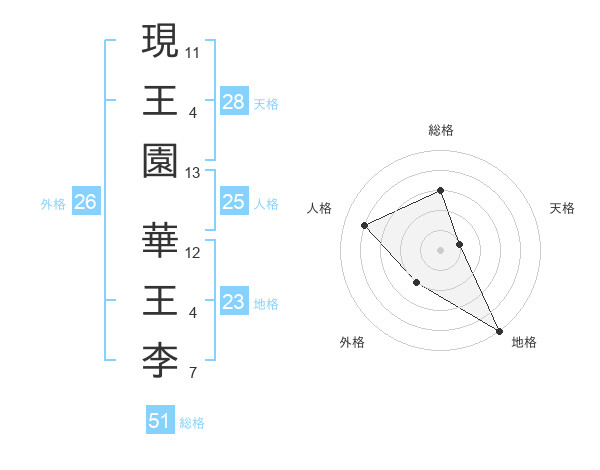 現王園 華王李さんの総格は51画の3点!