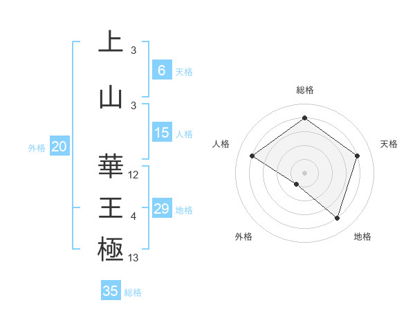 上山 華王極さんの総格は35画の4点!