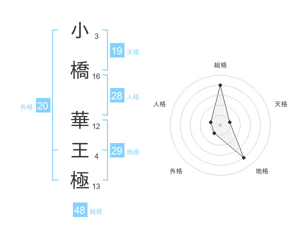 小橋 華王極さんを姓名の画数から五運を鑑定