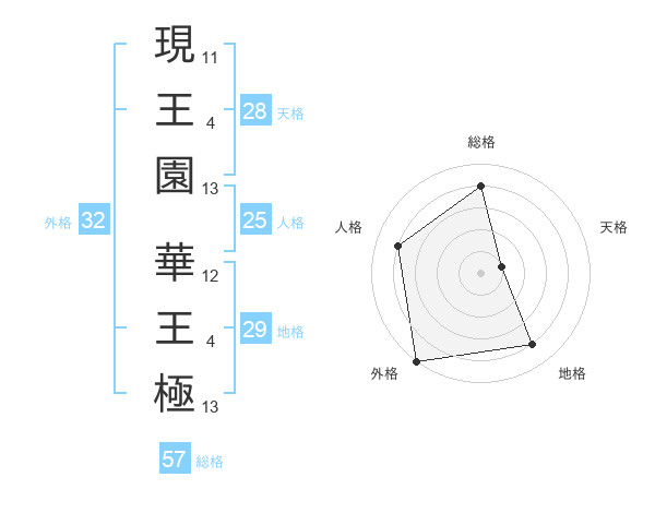 現王園 華王極さんの総格は57画の4点
