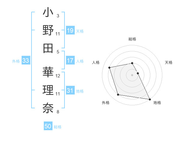 小野田 華理奈さんの総格は50画の2点!