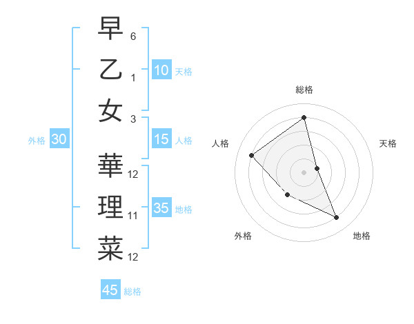 早乙女 華理菜さんの総格は45画の4点