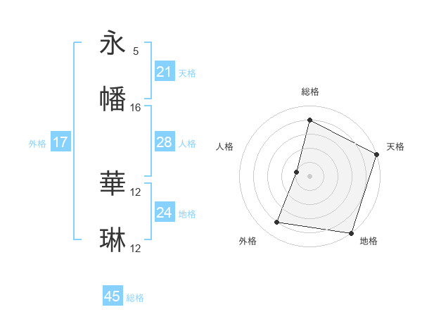 永幡 華琳さんの天格は21画の5点!