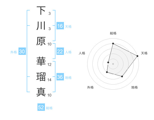 下川原 華瑠真さんの総格は52画の4点!