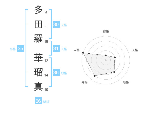 多田羅 華瑠真さんの人格は31画の5点!