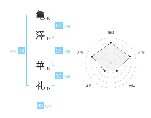 亀澤 華礼さんを姓名の画数から五運を鑑定