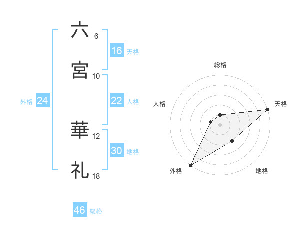 六宮 華礼さんの天格は16画の5点!