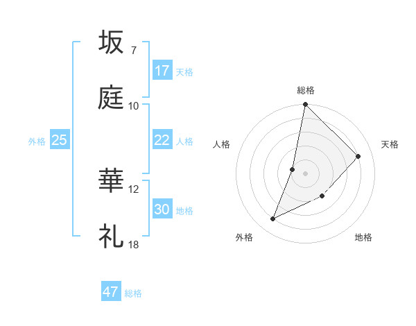 坂庭 華礼さんを姓名の画数から五運を鑑定
