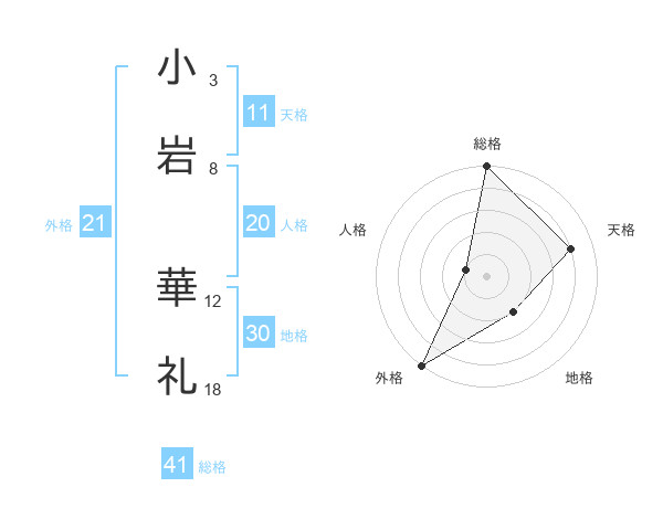 小岩 華礼さんの総格は41画の5点!
