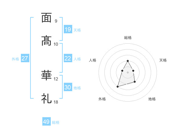 面髙 華礼さんを姓名の画数から五運を鑑定