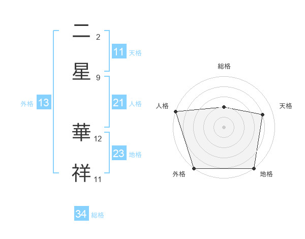 二星 華祥さんの総格は34画の2点!