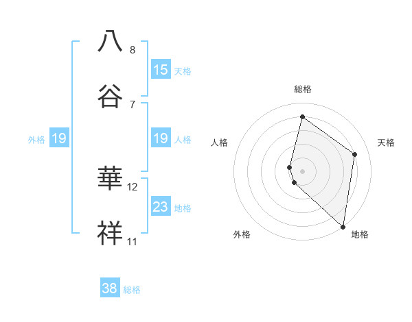 八谷 華祥さんの総格は38画の4点!
