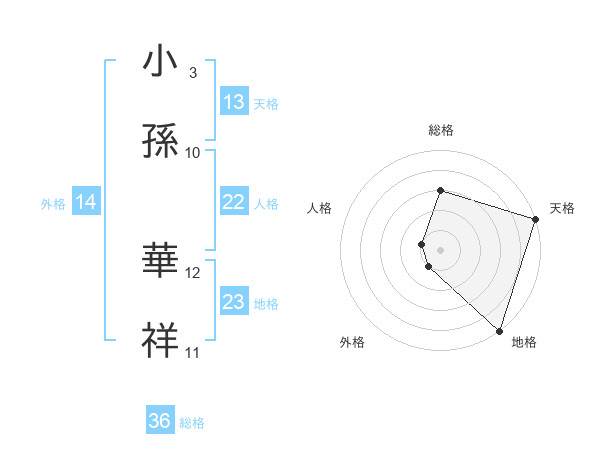 小孫 華祥さんを姓名の画数から五運を鑑定