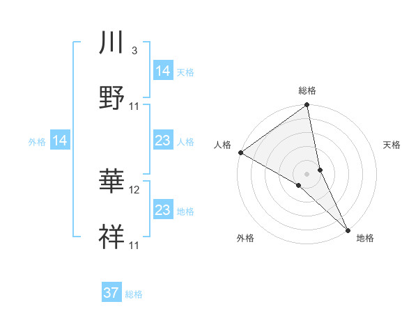 川野 華祥さんの総格は37画の5点!