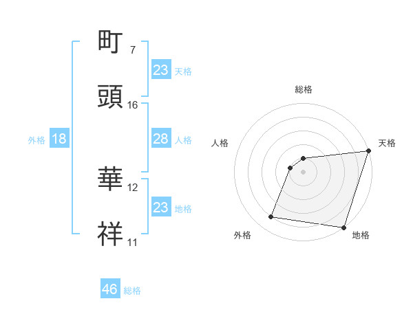 町頭 華祥さんの地格は23画の5点!