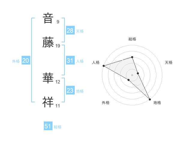 音藤 華祥さんの総格は51画の3点!